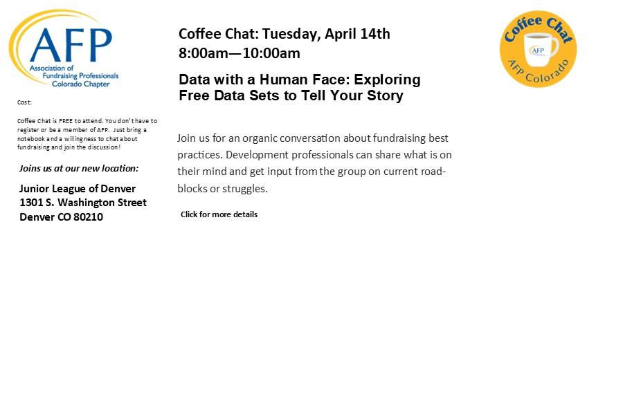 AFP Colorado Chapter is a membership organization committed to advancing philanthropy. We offer resources and create opportunities to help fundraising professionals be the best they can be. We bring fundraisers together to network, grow professionally, and advance our field.We provide educational luncheons, Rocky Mountain Philanthropy Institute (an annual fundraising conference), coffee chat, networking happy hours, and National Philanthropy Day in Colorado. We also offer opportunities for volunteering, sponsoring special events, and much more. Help make AFP CO work for you! Contact us at info@afpcc.org to learn more and get involved!Please check out our programs and volunteer opportunities and get to know your Chapter leaders. If you're not a member, join today and be connected!