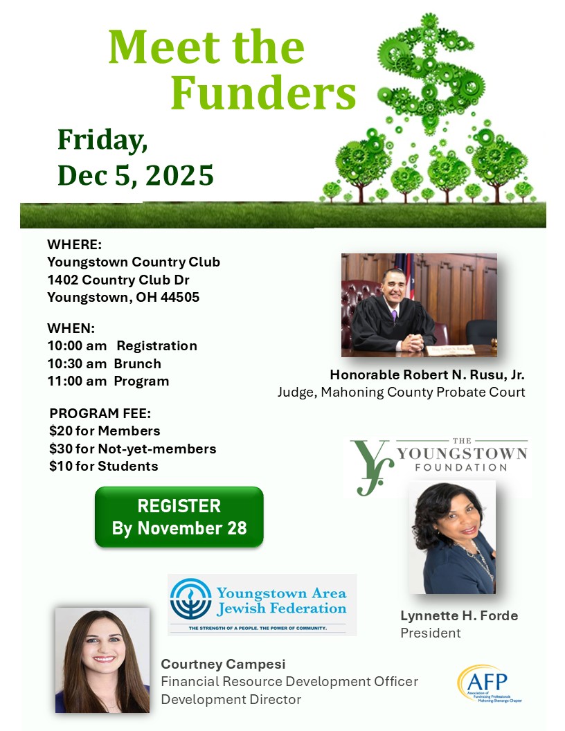 AFP Mahoning / Shenango reserves the right to cancel an event due to low enrollment, inclement weather, or other circumstances which would make the event non-viable. If AFP MASH cancels an event, registrants will be offered a full refund. Should circumstances arise that result in the postponement of an event, workshop, or seminar, participants will have the option to either receive a full refund or transfer the registration to the same event at a new, future date.