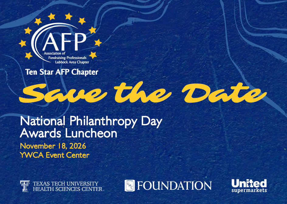 The Lubbock Area Chapter of the Association of Fundraising Professionals is made up of over 90 fundraising professionals in Lubbock and the surrounding areas. Our organization offers members the opportunity to connect with colleagues, engage in creative thinking, network with new friends and achieve great results in their work.
